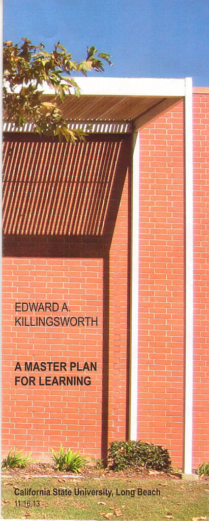 Four-color walking tour brochure of the Cal State Long Beach campus. Features history of master plan development by Case Study architect, Ed Killingsworth. 2013