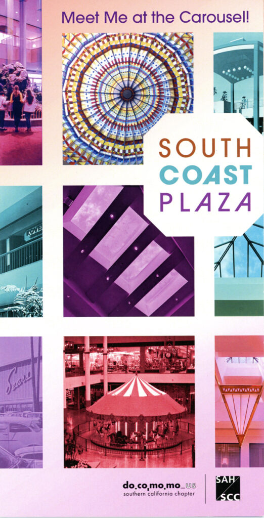 Large tri-fold brochure and docent scripts for self-guided tour of South Coast Plaza. 2022