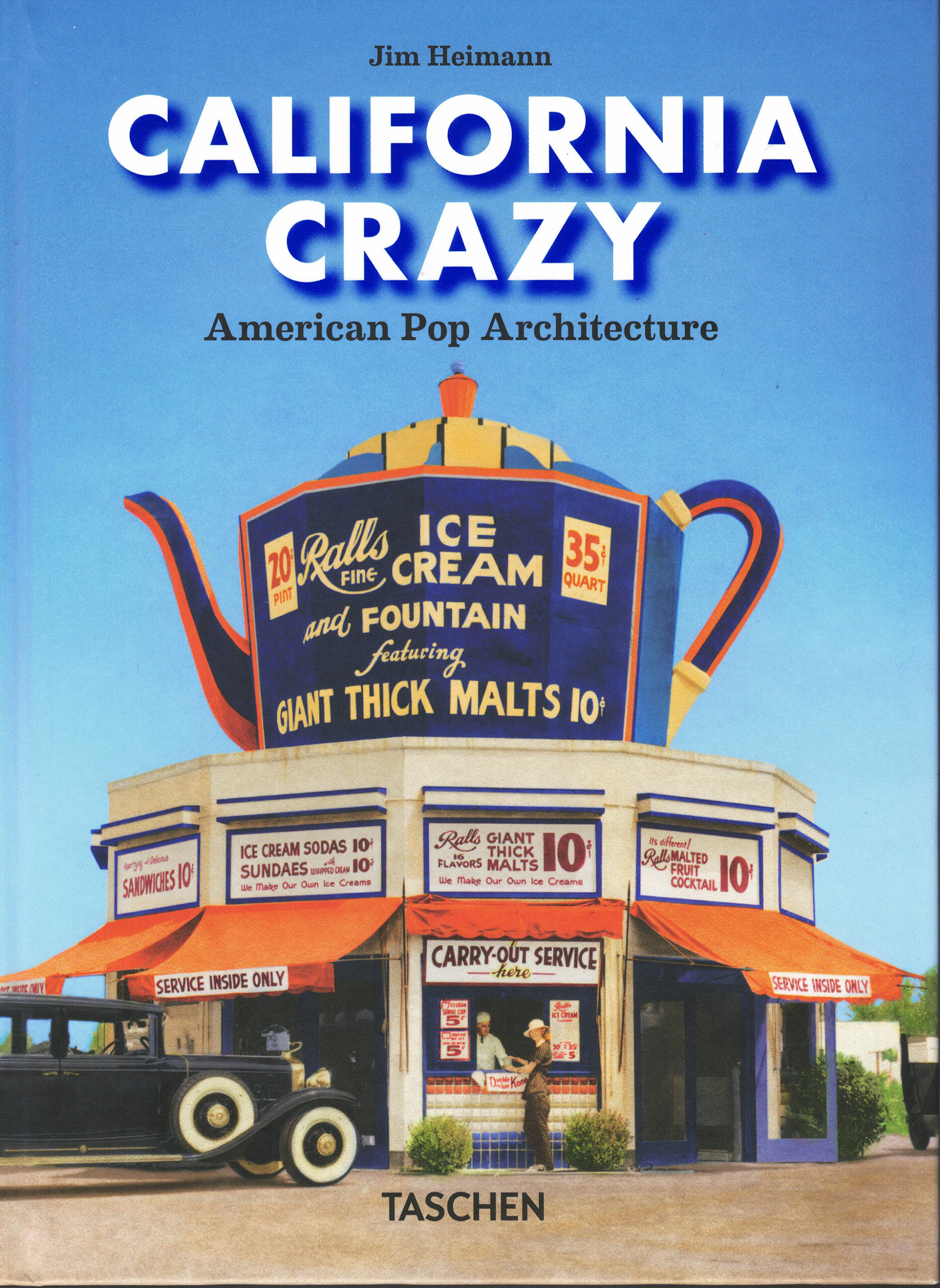 For its 45th anniversary, Taschen is repackaging several of its best sellers, including this compendium of California’s most outlandish buildings through the years. The “compact” edition is a small thick volume that works well in the hand and calls for in-depth viewing necessary to see the details in the hundreds of archival photos. The content matches the 2018 revised and greatly expanded edition, which updated and added to the 1980 original. Whatever the lineage, the book is a delightful romp through the most eccentric structures in the most eccentric state. Actually, most of these examples are in the LA area, with some in the deserts and just a few farther north. Shops, theaters, gas stations, eateries, and an inordinate amount of ice cream parlors proclaim their purpose through the buildings’ declarative shapes and outsized objects. Especially fun is documentation of the same building through the years. My favorite is an ice cream shop with four large cones at each corner, which went through at least four iterations in seven years before winding up as a health juicery with the cones turned into carrots. The places are primarily historic—meaning gone—with a couple more contemporary (1990s!) spots, such as Chiat Day “Binoculars” Building (Gehry Partners with Claes Oldenberg an Coosje van Bruggen, 1991), Century City Mall’s Dive! Restaurant featuring a yellow submarine (Cunningham, 1994), and Team Disney with the Seven Dwarfs pediment (Michael Graves, FAIA, 1990) and Disney Animation Building with the Sorcerer’s Apprentice Hat (Robert A.M. Stern, FAIA, 1994). Heimann’s several essays —and one by David Gebhard—place the structures in context. Amble through the years in the alphabetical section taking you from Airplanes to Zeppelins—and most everything in between.