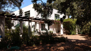 The Miltimore Residence expresses the beautiful simplicity of Gill’s early modernist aesthetic and focus on efficiency. Beautifully proportioned, the vast expanses of unadorned plaster are punctuated by large casement windows that look out upon luxuriously landscaped grounds. The house also features what Gill called a “green room” – trellis structures covered with vines supported by minimalist columns.