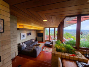 This small, jewel of a home has been lovingly restored and reflects the influence of Frank Lloyd Wright and his principles of organic architecture. Wear emphasized connection to the outdoors and the surrounding landscape through design, siting, and detailing, even incorporating local materials into the concrete used in his projects.