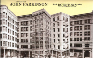 An 11 x17″, four-color brochure featuring a self-guided walking tour of Parkinson buildings in the historic core and beyond.