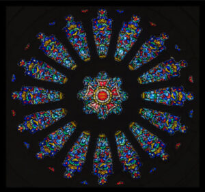 Highlights of the exhibit include a hand-crafted window from Frank Lloyd Wright’s 1924 Ennis House, a fused glass portrait of Kobe Bryant by Tim Carey and Judson Studios, and The Muralist by David Flores, an enormous street-art-style window made of stained and fused glass.