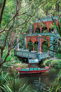 Legendary Hollywood designer and artist Tony Duquette was as comfortable creating Tony-award winning costumes as he was orchestrating the gardens of a 100-acre Malibu ranch. His sets for MGM films are memorably over-the-top, while the opulent jewels he fashioned for famous clients (including Tom Ford and the Duchess of Windsor) are now sought-after collector’s items. In fact, Duquette’s restless creativity oozed into every facet of his life before he died in 1999, but it was his Beverly Hills estate, Dawnridge, that most embodied Duquette’s uniquely “maximalist” style both indoors and in the extraordinary gardens.