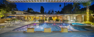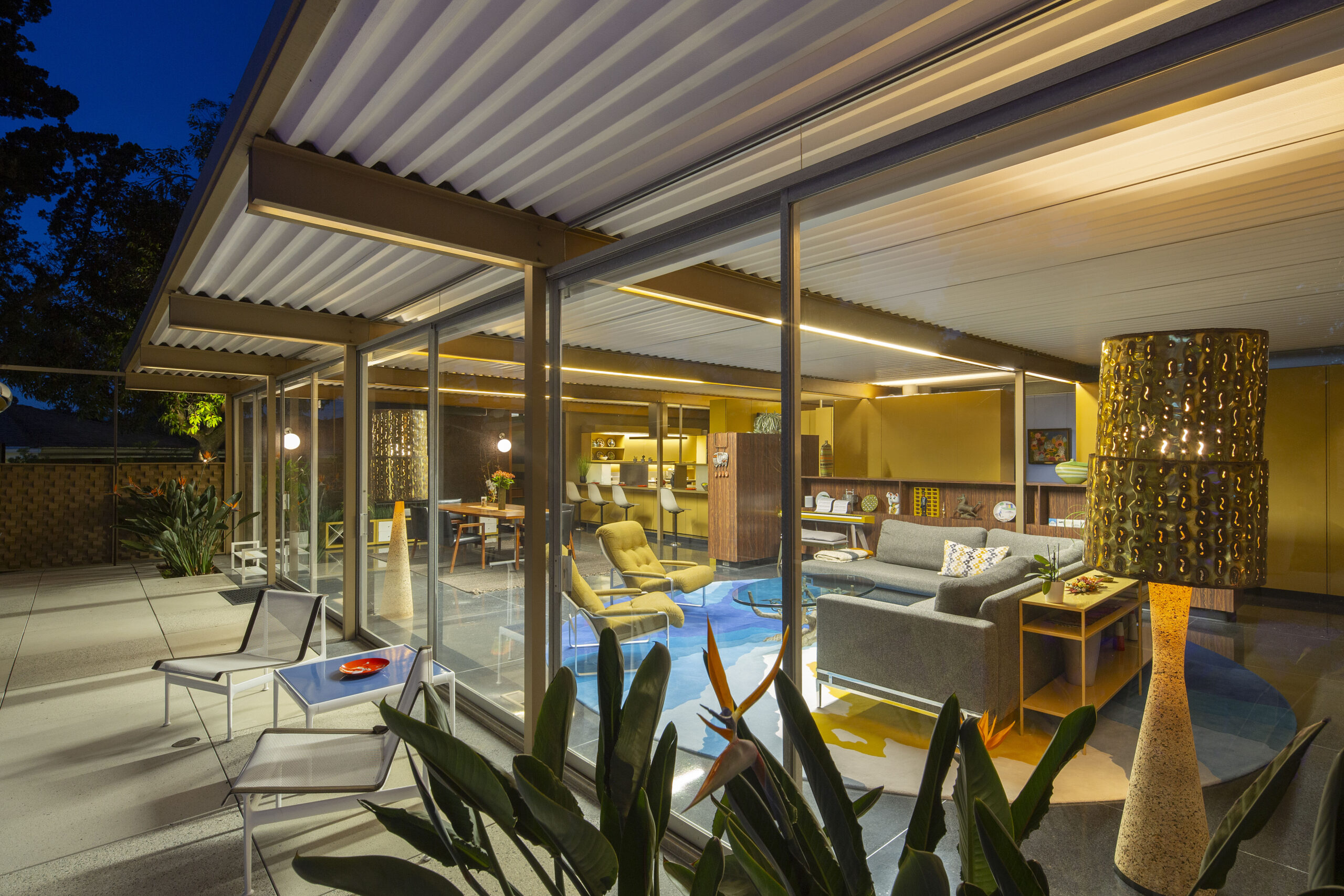 Only the third owner, Brettler “inherited” much of the original Grossman furnishing, augmenting them with period-appropriate additions. Secondary lighting and LED replacements update the home, as do the addition of electric shades, new appliances and plumbing fixtures, and cork flooring. Original laminates, terrazzo, and cork walls were rehabbed with care.