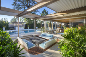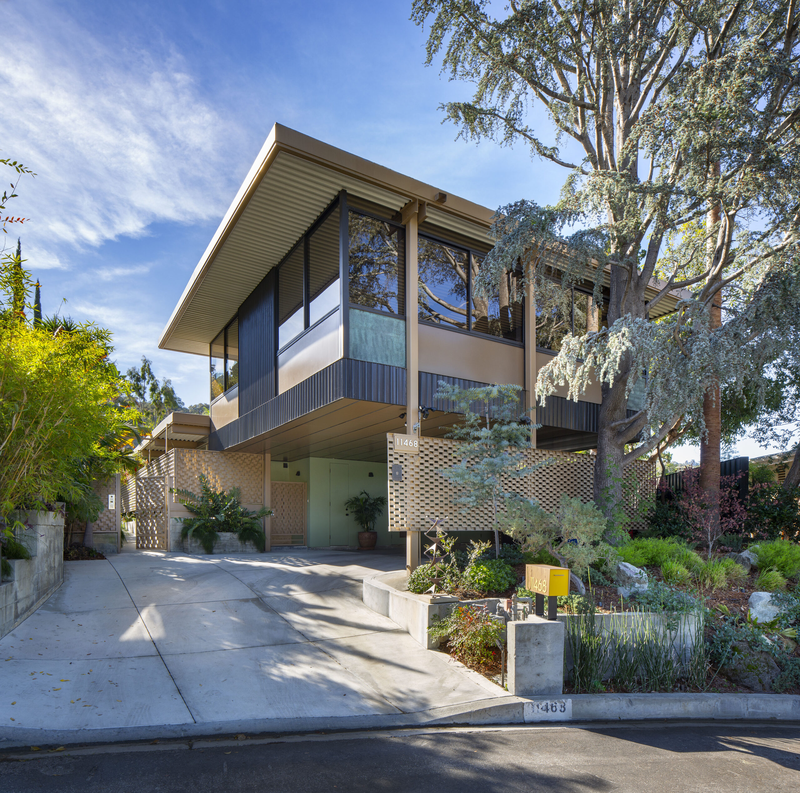 Working from original blueprints, Brettler updated the 1964, 3,800-square-foot house to return it to its ideal state, while reworking inappropriate earlier revisions. Extensive structural work was done due to benign neglect. Situated on an oblong lot in the hills above Studio City, the house’s perpendicular orientation and flowing functional floor plan allow for privacy and views from all rooms.