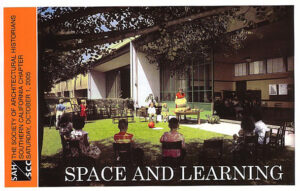 Eight-page color brochure on the historic and contemporary legacy of LA school architecture, featuring projects by Richard Neutra, Thom Mayne, Rios Clementi Hale Studios, others, from Los Angeles tour.